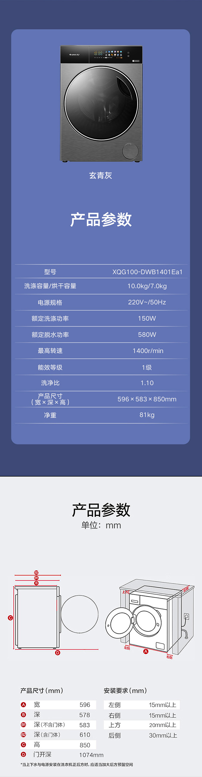 全域透气烘,衣物不在闷着烘。AI智能感应,脏污一键洗净。
