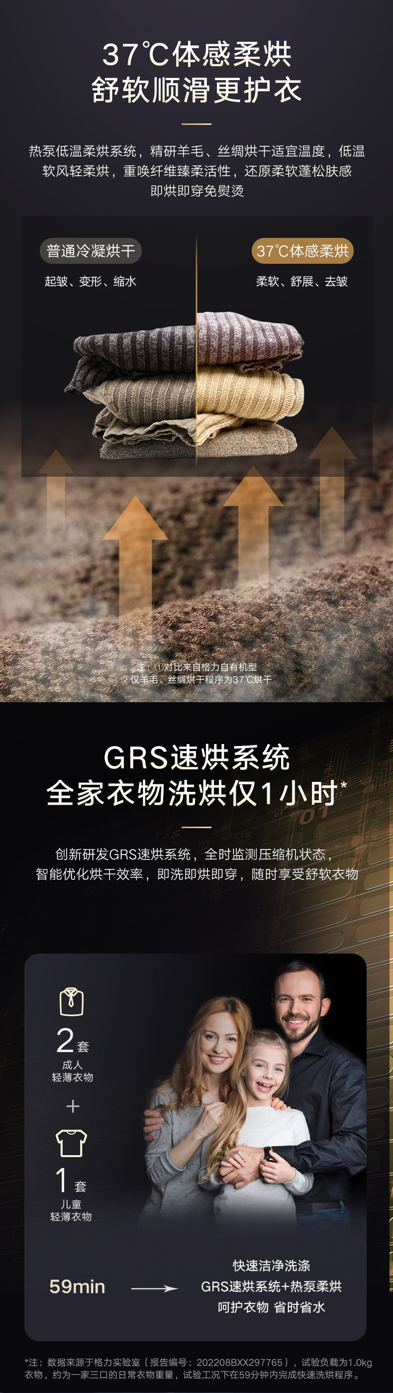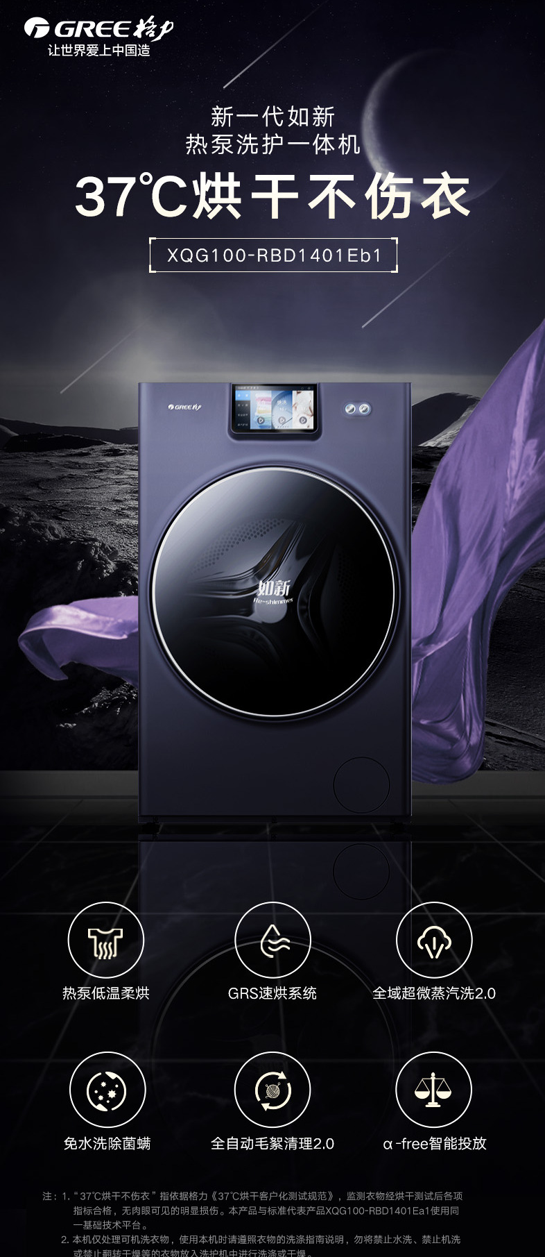 37℃低温柔烘不伤衣;全域超微蒸汽洗2.0;ICleaner全域智清洁