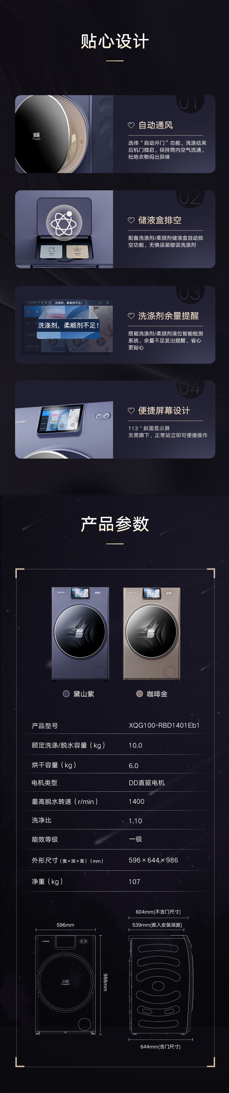 37℃低温柔烘不伤衣;全域超微蒸汽洗2.0;ICleaner全域智清洁